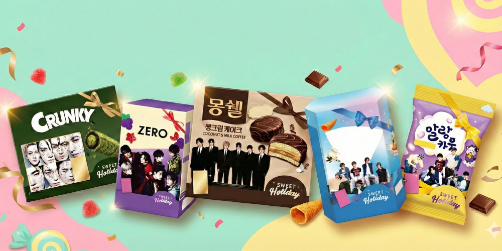이번에 출시되는 컬래버 제품은 ‘엔하이픈’ 온팩 ▲크런키 더블크런치바 그린티, ▲제로 블랙커런트베리 젤리, ▲몽쉘 코코넛&밀크커피 등 3종과 ‘TWS’ 온팩 ▲꼬깔콘 바닐라밀크맛, ▲말랑카우 블루베리치즈 등 총 5종이다.
